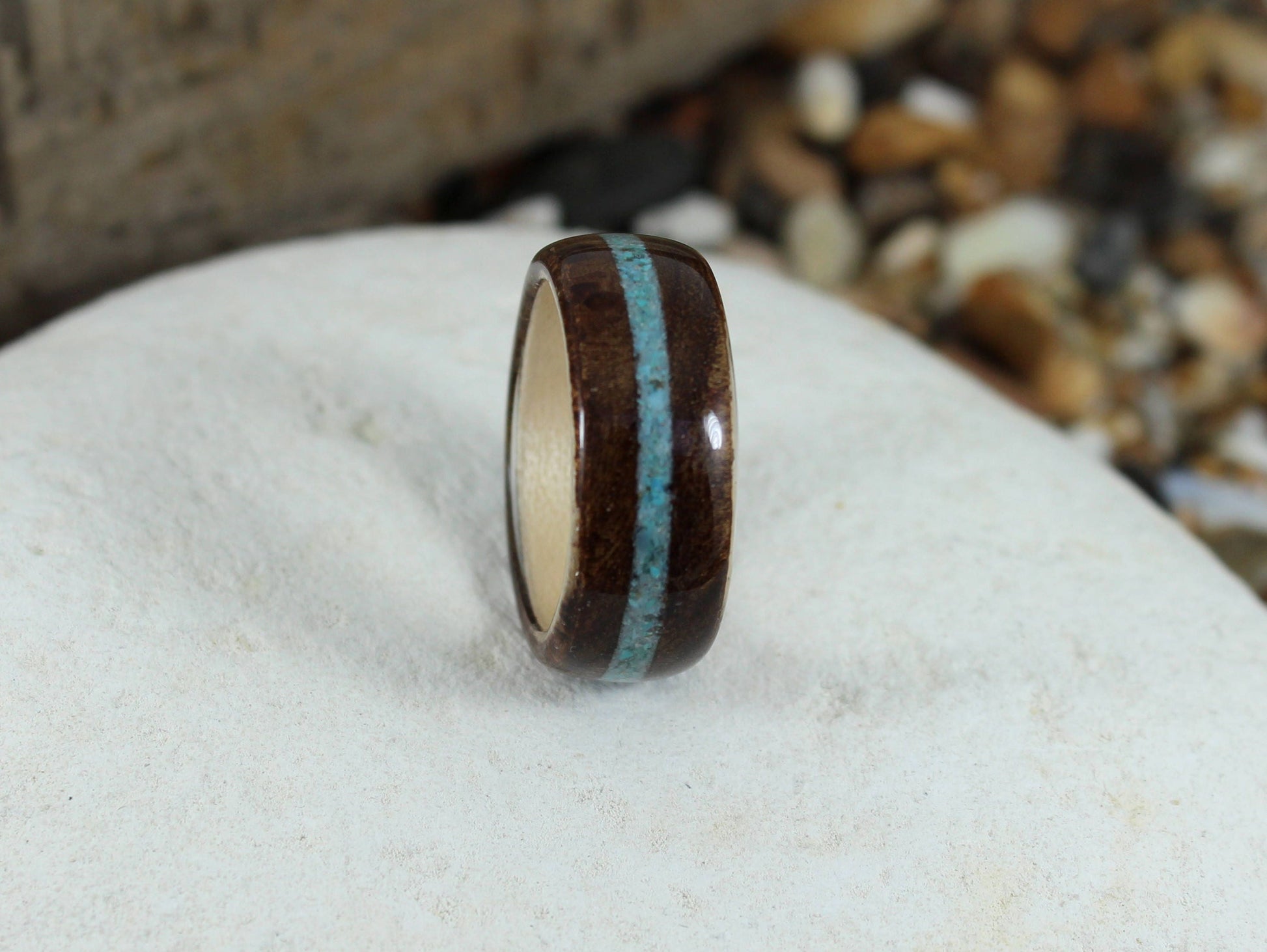 Walnut Burl & Maple with Turquoise Bent Wood Ring