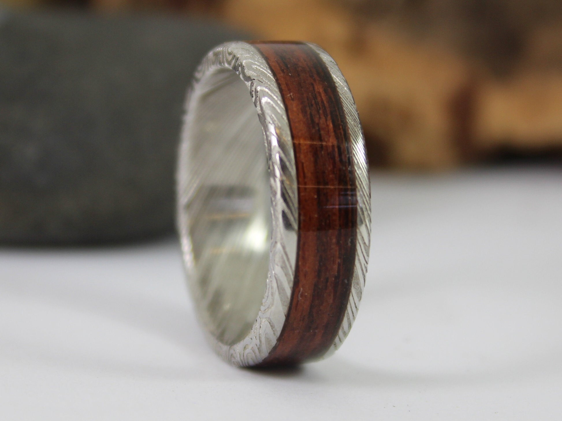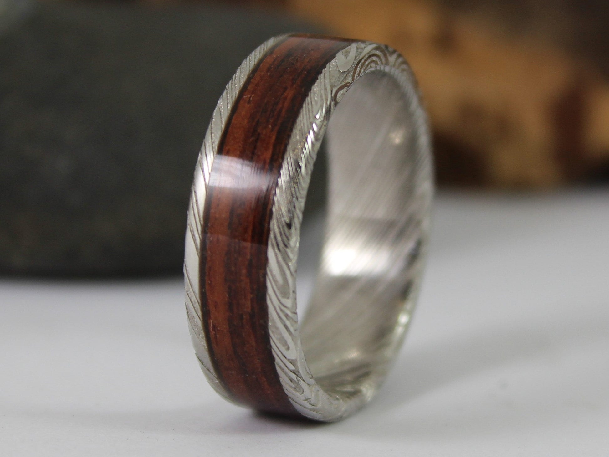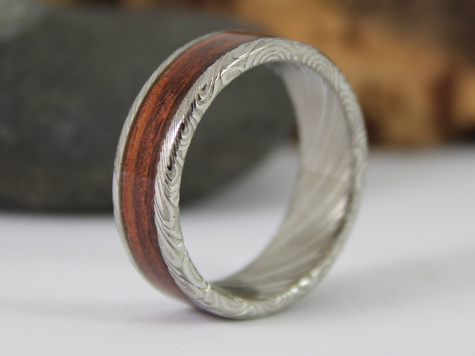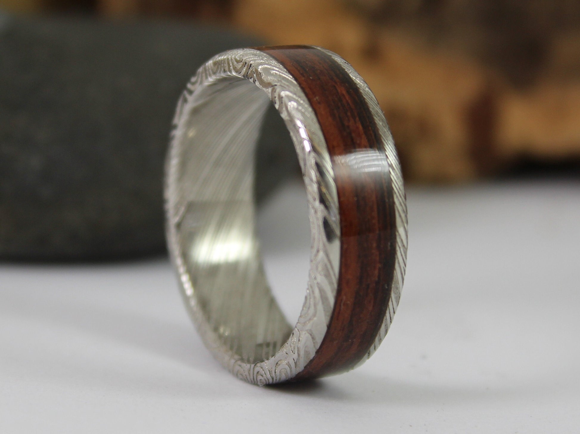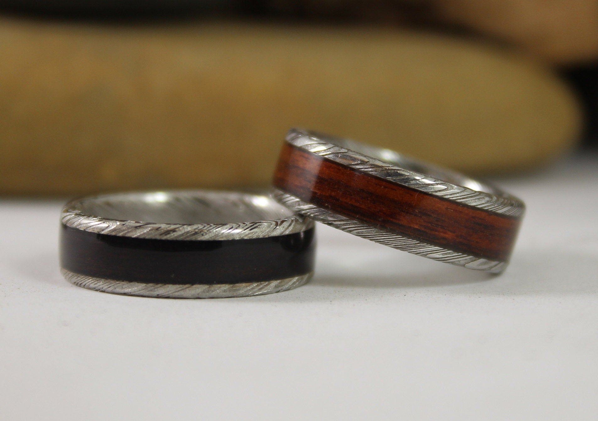 I do offer stainless Damascus steel rings if you prefer something that can withstand any punishment you throw at them for the more adventurous spirits!