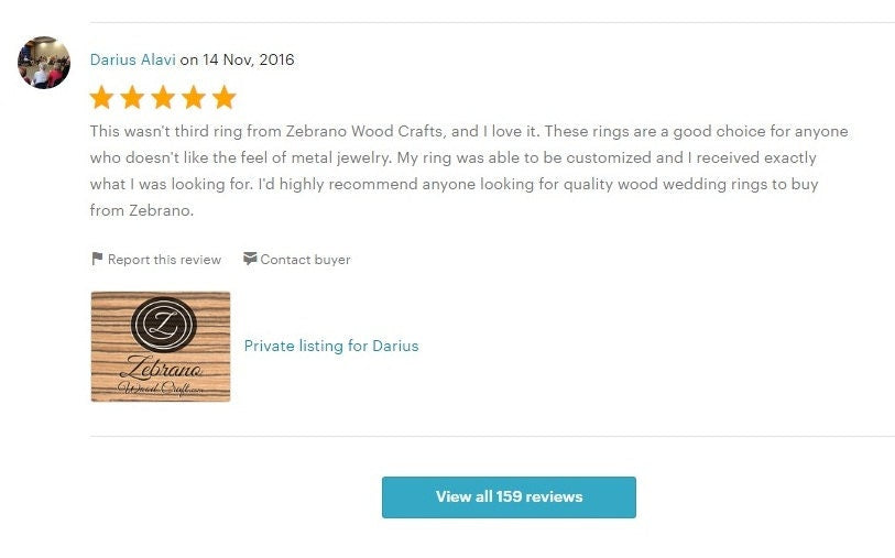 (if not a lifetime) however wood is a natural material and needs to be treated with care. If over time the ring becomes damaged you can order replacements at a discount of 25% off the current retail value + postage or contact me with details to arrange refinishing if required (prices will vary and shipping costs are the responsibility of the customer).