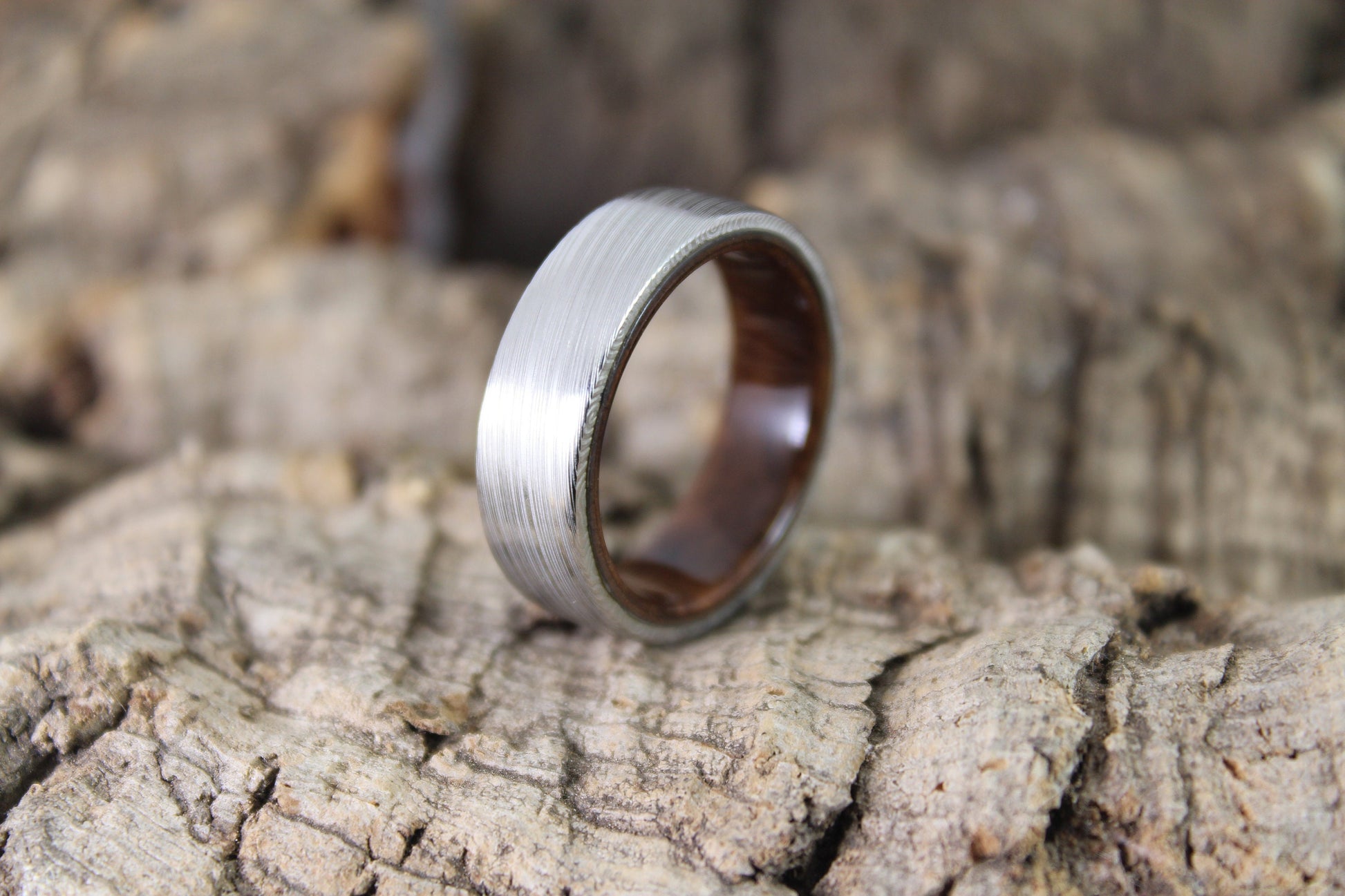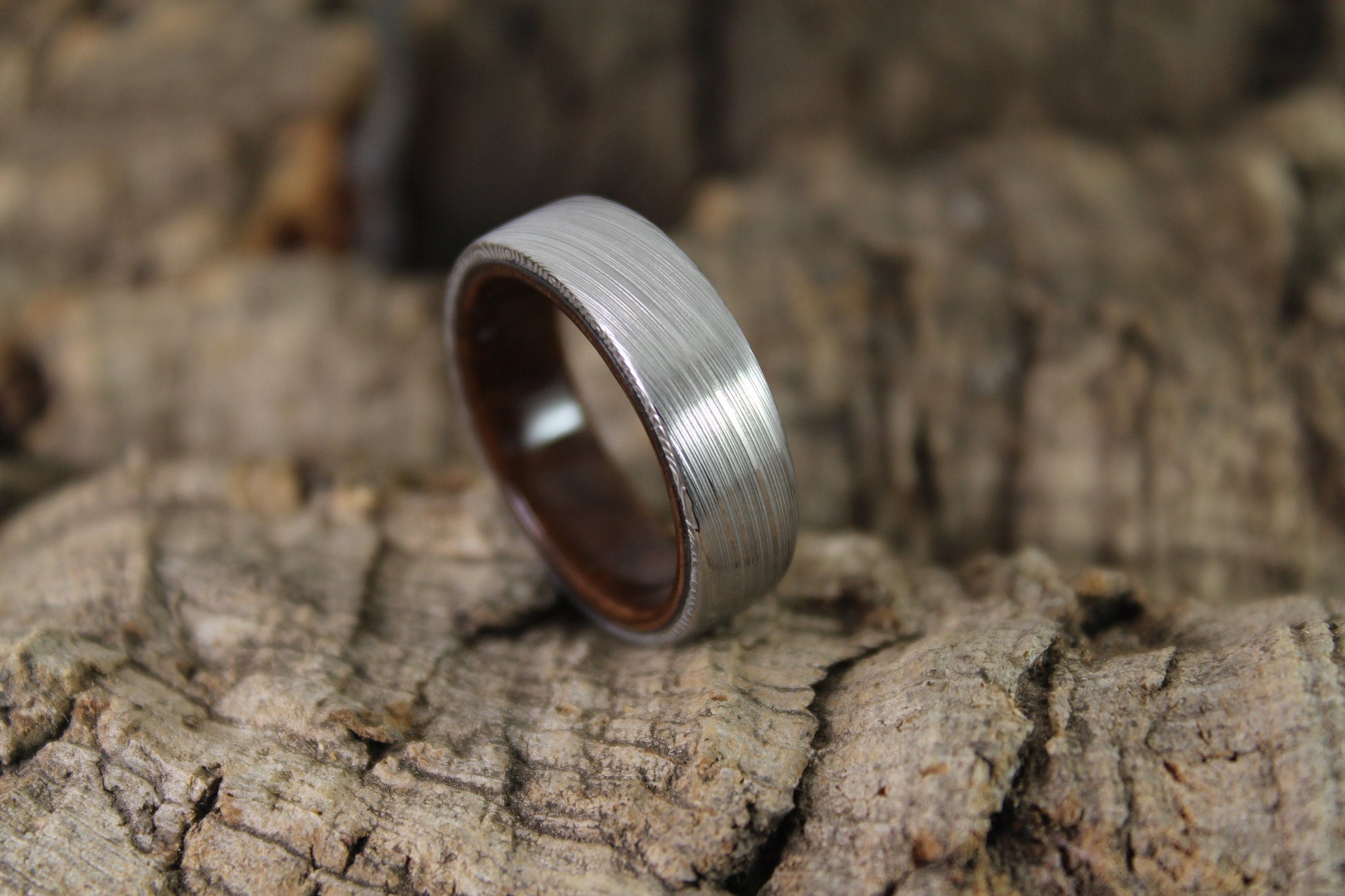 Damascus steel ring with Walnut Burl inside handmade to order in any size.