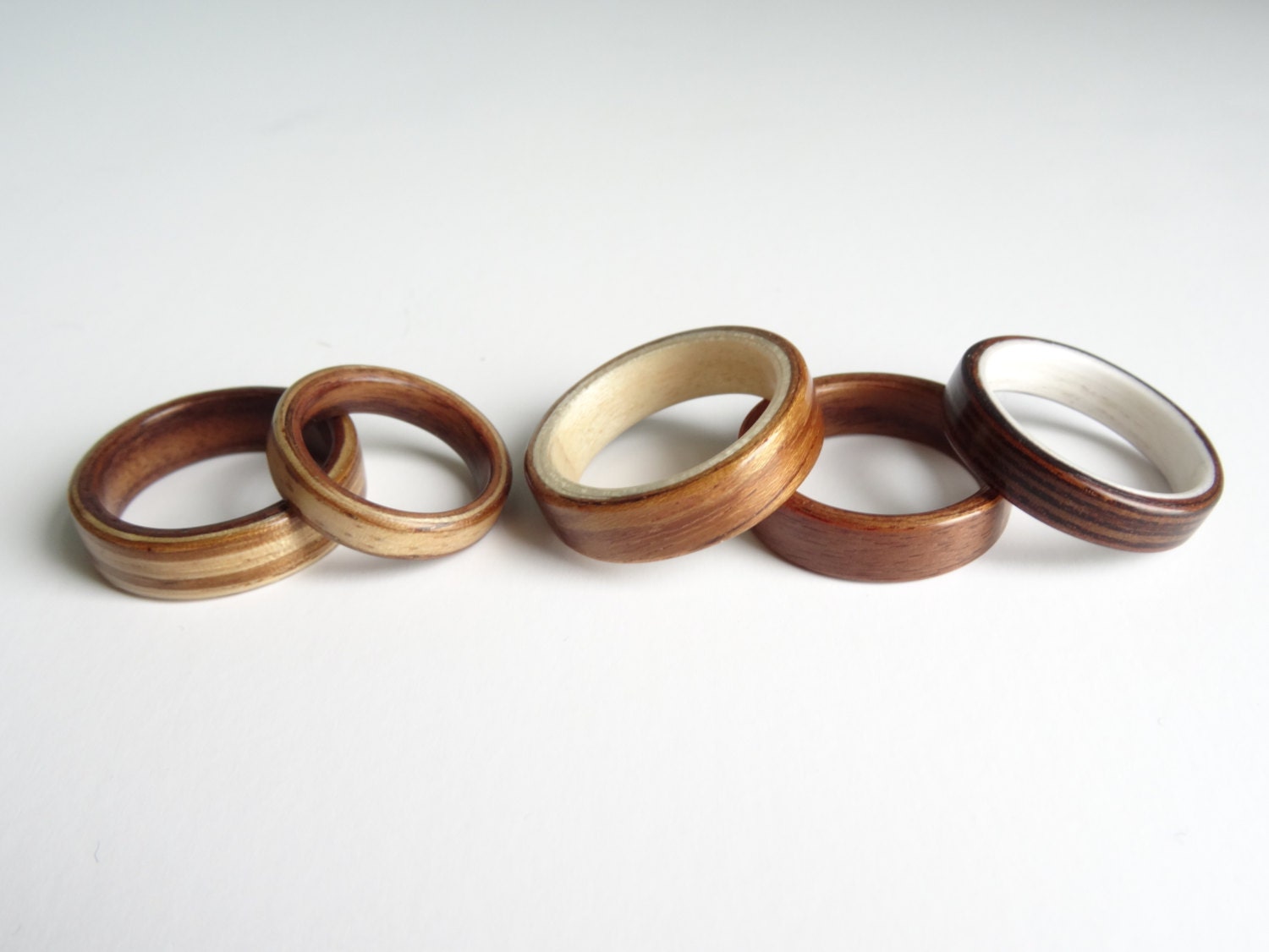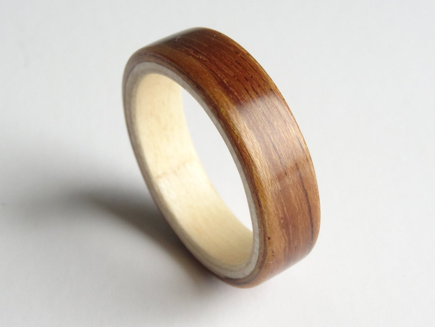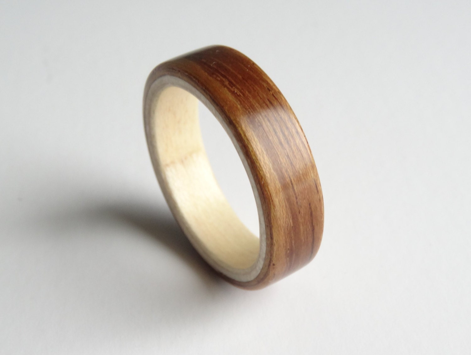 A stunning wooden ring made with Tropical Olive and Sycamore in the bent wood tradition to any UK or US size.